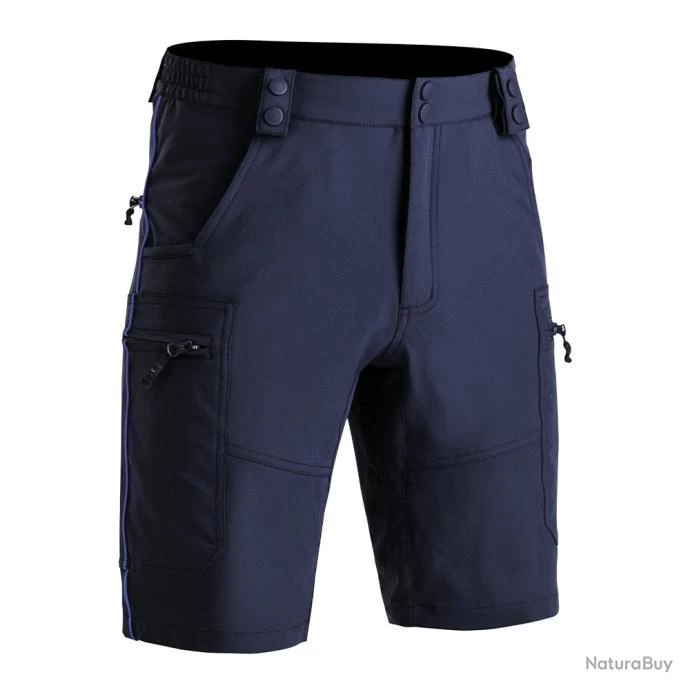 Bermuda Swat stretch “POLICE MUNICIPALE” P.M. ONE Liseré bleu 96% polyester 4% spandex Passants pour ceinture/ceinturon (50 mm) 2 poches à l’italienne avec encoche pour support : couteau, lampe, stylo, etc. 2 grandes poches plaquées avec zip 1 petite poche intérieure pour “clés menottes” 1 poche arrière avec zip Braguette avec zip Lavage à 30° Livré sans accessoires Tailles : 34 à 60