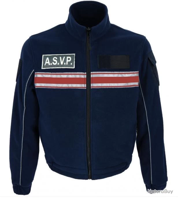 Manches longues avec 1 poche à rabat sur manche gauche avec compartiments stylo et sifflet en tissu contrasté, velcros écus pour insignes à chaque manche, bas de manches élastiqués, passepoils rétro-réfléchissants insérés le long des découpes devant et dos