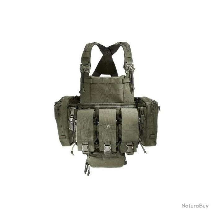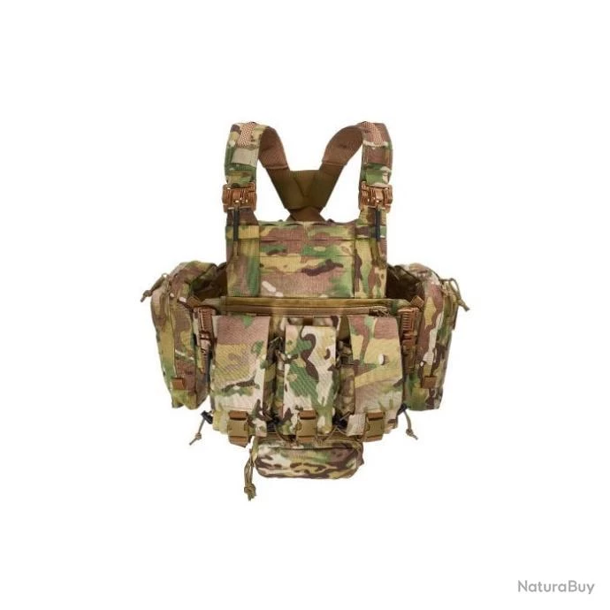 - Il dispose de trois poches porte chargeurs DBL sur le devant, avec rabat amovible, et de deux poches polyvalentes (disposées vers les plaques latérales balistiques et pourvues de MOLLE Lasercut et de support Velcro® patronymique) permettant le rangement du matériel.