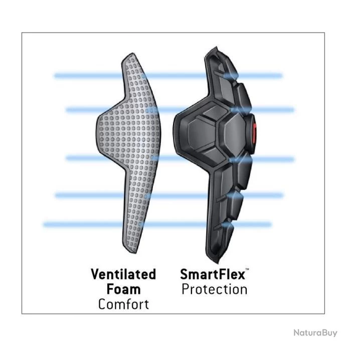 Coussinets SmartFlex absorbant les chocs et moulés sur le corps, superposés sur une couche de mousse intérieure douce et ventilée permettant une protection, un confort et une respirabilité maximum.Les coussinets SmartFlex offrent une protection légère et ajustée qui est flexible lorsque vous vous déplacez et durcit à l’impact.