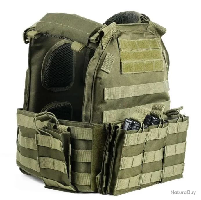 – Vous avez en supplément du gilet : un porte chargeur 3 emplacements M4 + un porte chargeur 1 emplacement M4 + 2 poches de rangements. Le tout s’adapte sur le gilet grâce à un système “molle” avec pressions.