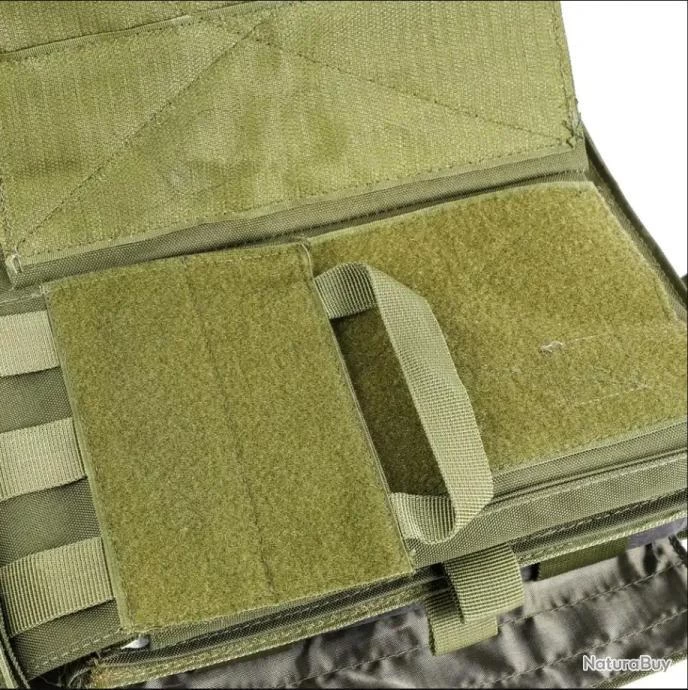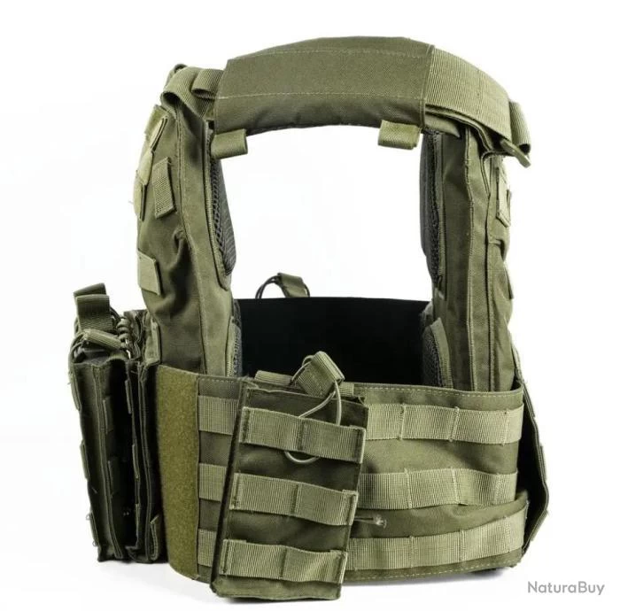 – Compatible avec le système MOLLE (permet de fixer de l’équipement et des accessoires sur le gilet : porte chargeur, trousse de secours, etc..).