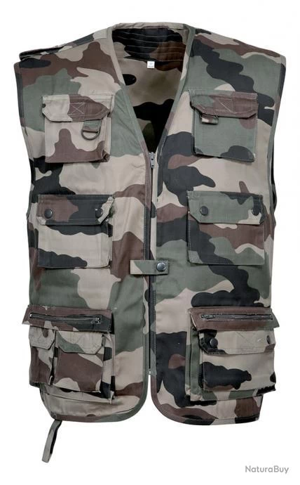 Ce gilet reporter uni Idaho camo est composé à l’extérieur de polyester et doublé 65 % polyester et 35 % coton.