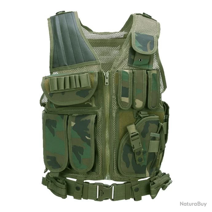 Ce gilet tactique prédator avec holster, réglable à sa taille par les sangles de chaque côté.
