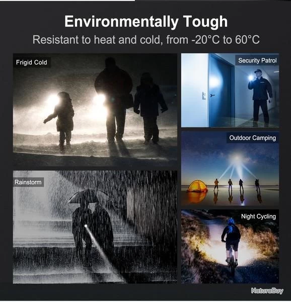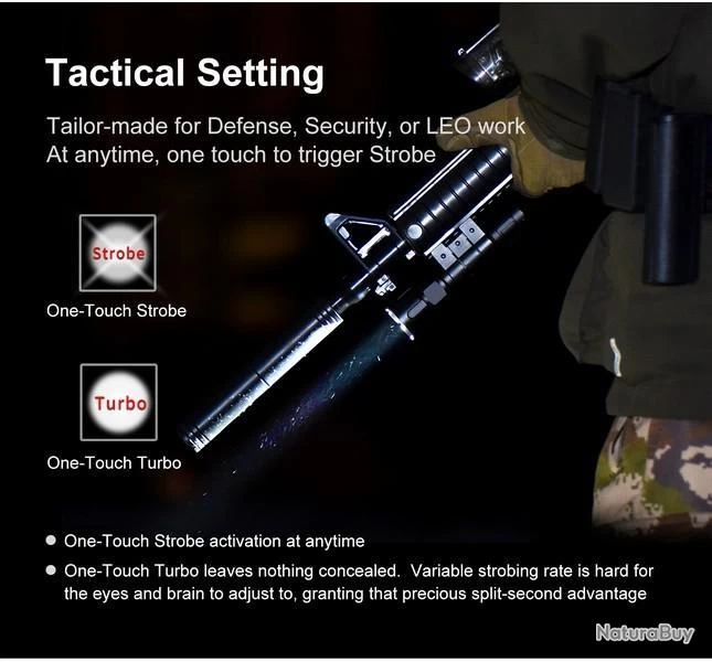 1200 Lumens ANSI (4h) portée 240 mètres 10400cd