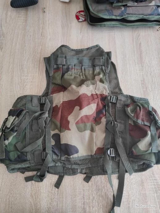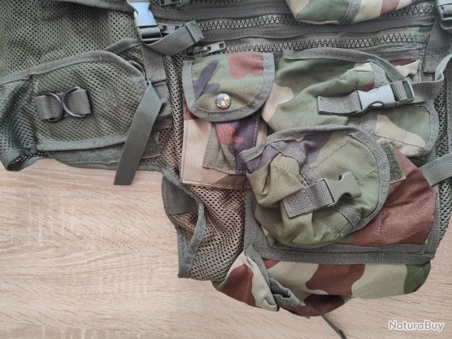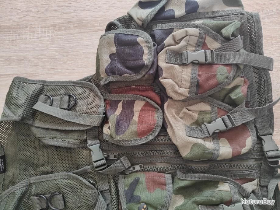 Gilet de combat de marque miltec, en camouflage centre Europe. Nombreuses poches porte chargeur pourtant accueillir des chargeur M4, G36 ou AK. Une poche intérieure détient un holter pour réplique de poing. Très bon état général.