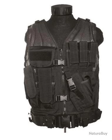 Gilet d’intervention tactique noir, fermeture par glissière, avec de nombreuses poches tactiques pour armes, bâton, aérosols, lacrymogènes, téléphone, smartphone, lampe tactique … Il est composé de 7 poches + 2 poches intèrieur.