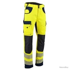 Pantalon de travail haute visibilité multipoche et tricolore.