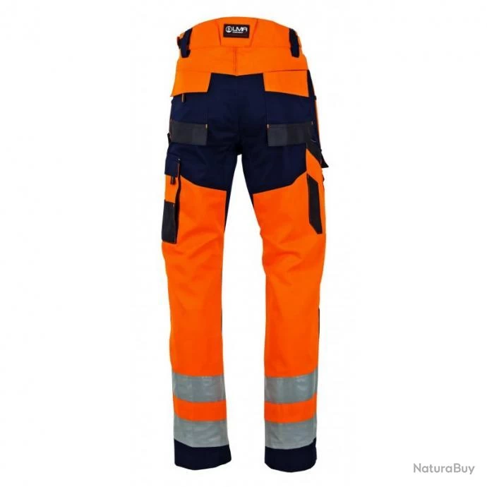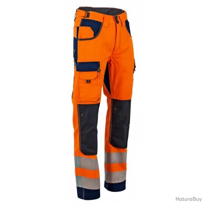 Pantalon de travail haute visibilité multipoche et tricolore.