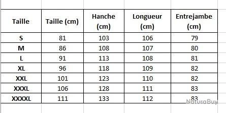 Tailles : L – 2XL – 3XL (Veuillez vous référer au tableau récapitulatif des tailles)