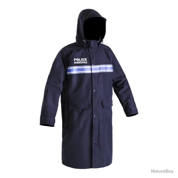 Parka de pluie membranée “POLICE MUNICIPALE” P.M. ONE Marquage en transfert “POLICE MUNICIPALE” et bandes rétroréfléchissantes face-dos 100% polyester Membrané respirant Imperméable – coupe-vent Fermeture avec rabat par zip et boutons-pression Capuche avec visière et cordon de serrage Col montant 2 grandes poches plaquées face avec auto-agrippant Bas des manches réglable par auto-agrippant Système «Quick-Shot» gaucher/droitier : accès rapide à son arme ou à son équipement fixé à la ceinture, au ceinturon ou à la plaque de cuisse Fermeture par zip étanché sur toute la longueur latérale Lavage à 30° Livré sans accessoires Tailles : XS à 4XL