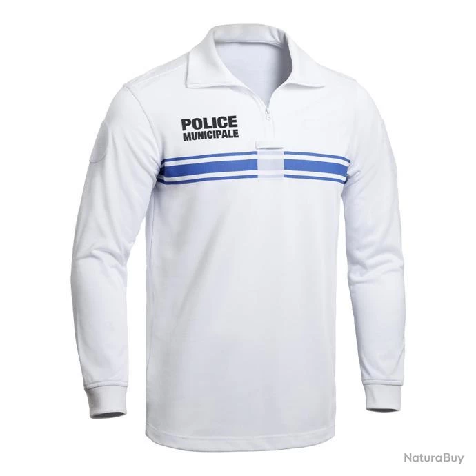 Polo “POLICE MUNICIPALE” P.M. ONE manches longues Marquage en transfert “POLICE MUNICIPALE” et bandes bleues face-dos 100% polyester Intérieur en molleton 300 g/m² Respirant et quick dry Anti-bactérien et anti-moisissure Col montant en coton avec fermeture zip Pochette face porte-stylos Auto-agrippant pour écusson sur chaque manche Porte-grade (5 x 5 cm) Passant porte-lunettes Ne déteint pas Ne se déforme pas au lavage Lavage à 30° Livré sans accessoires Tailles : XS à 4XL