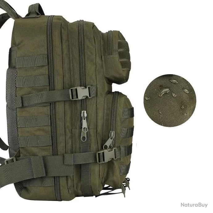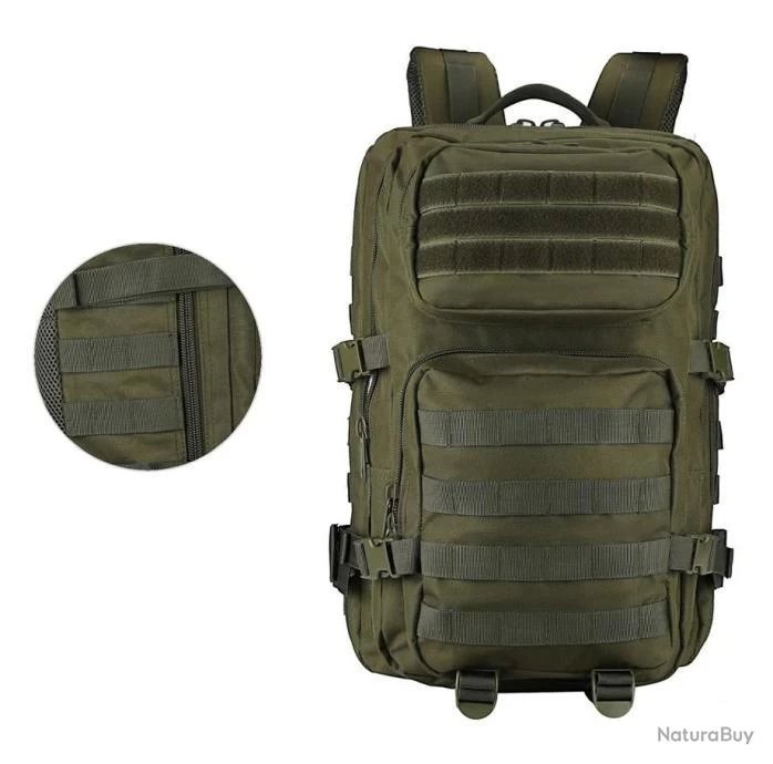 Sangle d’épaule, poignée de transport haut, sangles de compression latérale, les poches avec une fermeture éclair bidirectionnelle, sangles de poitrine permettent de bien gérer le poids.