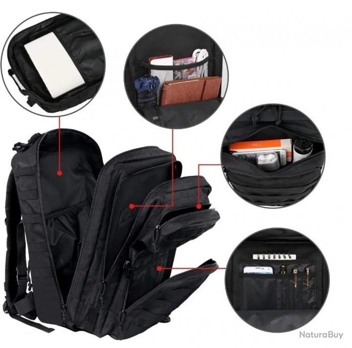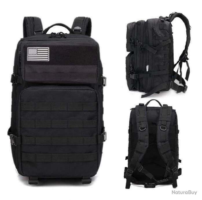 Sac à Dos Tactique Militaire 40L Multifonction Etanche Chasse Pêche Randonnée Livraison Gratuite Noir