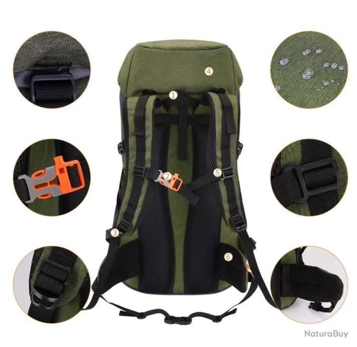 Grande capacité 50L le sac a une grande capacité est suffisante pour répondre à tous vos besoins. La grande poche principale et les multiples poches vous permettent de ranger tous vos essentiels.