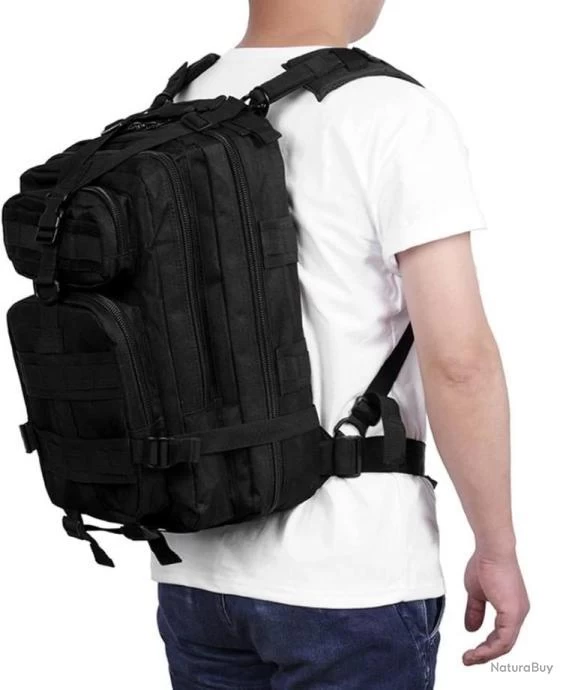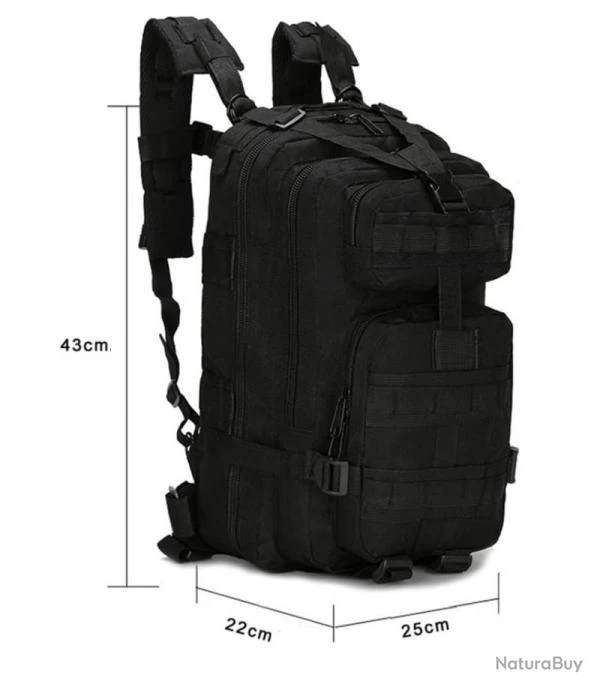 Sac à Dos Militaire Tactique Multifonction 25L pour Randonnée Chasse Pêche Camping Trekking Escalade Alpinisme Noir