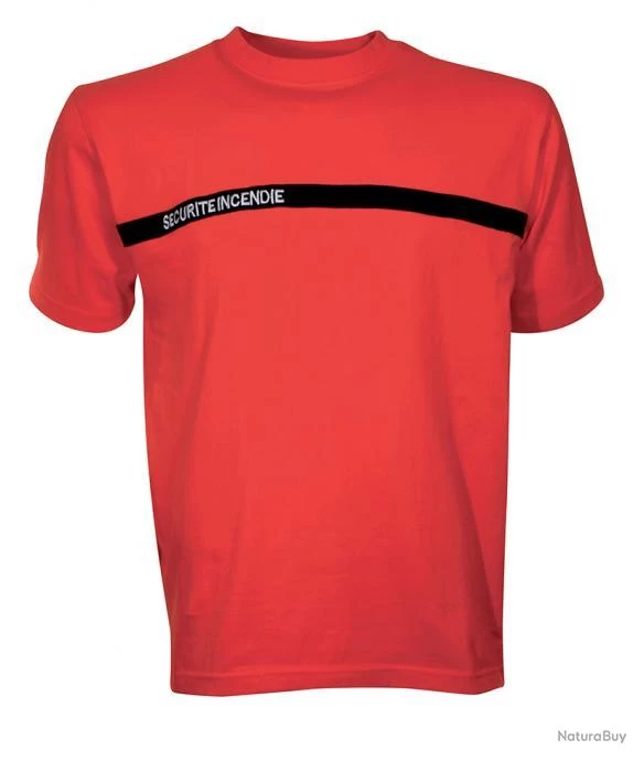 Ce t-shirt Sécurité Incendie CityGuard avec broderie “sécurité incendie” sur bande bleu marine est de couleur rouge.