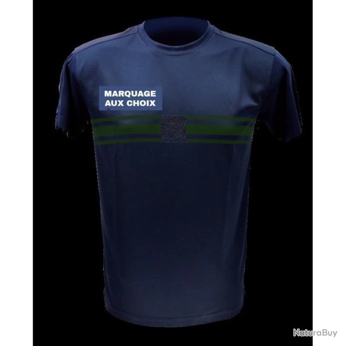 Tee-shirt coton bandes verte + grade poitrine et velcro pour écusson bras gauche
