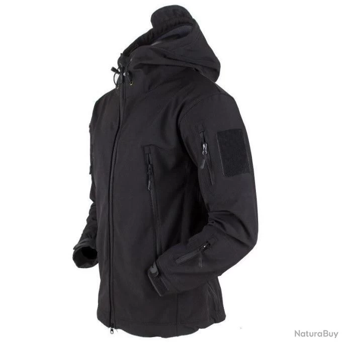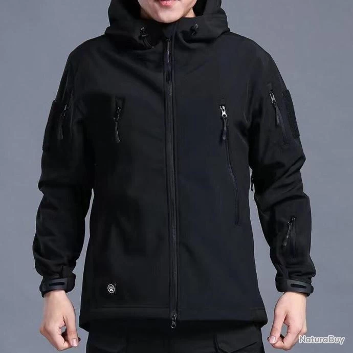 Veste à Capuche Militaire Imperméable Ultra Résistante Coupe Vent Camping Randonnée Chasse Noir Neuf