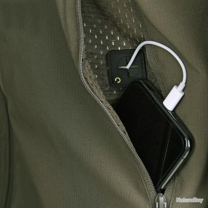– 2 Poches latérales passepoilées zippées de chaque coté dont une avec une ouverture pour fil d’écouteurs de téléphone, de mp3, de talkie walkie,….
